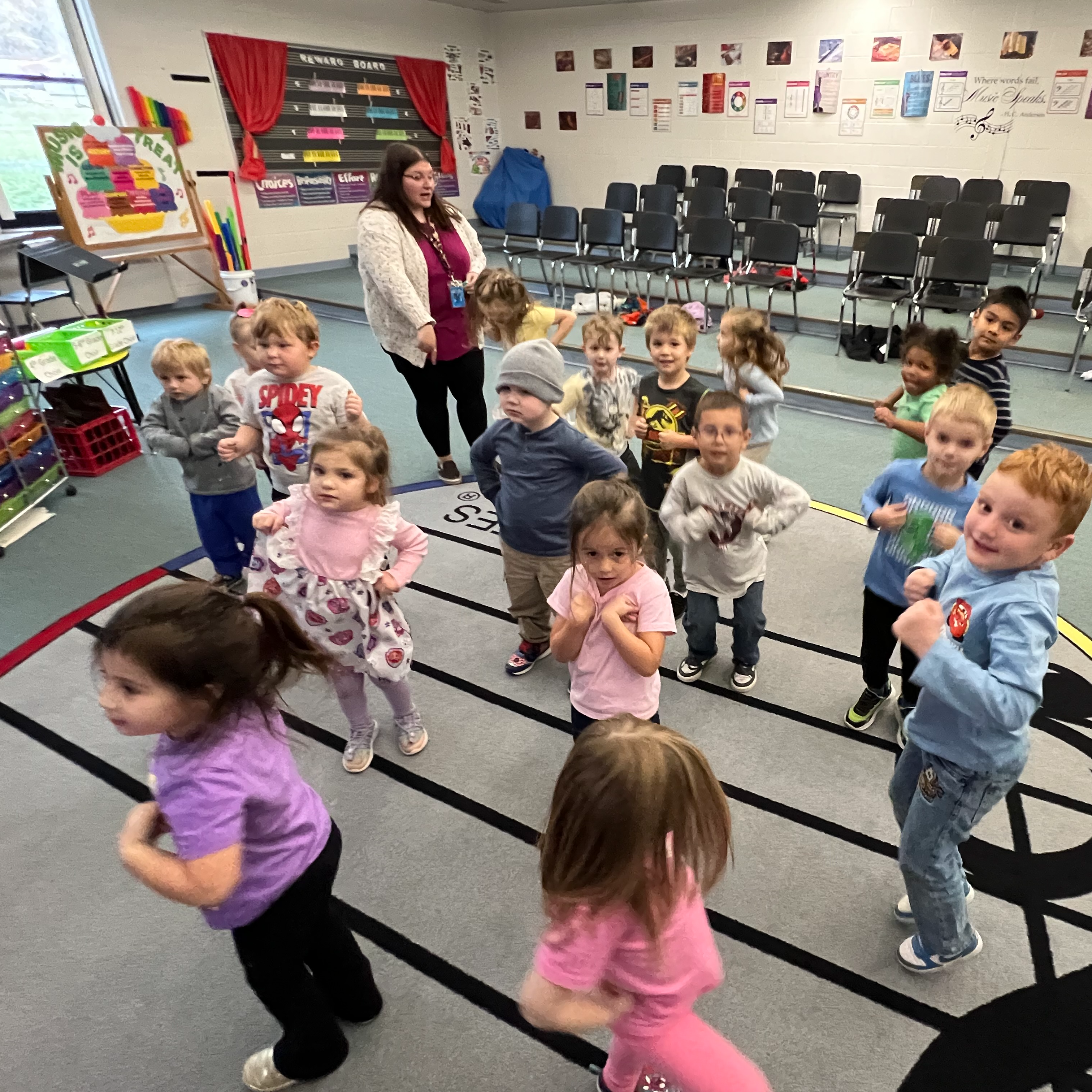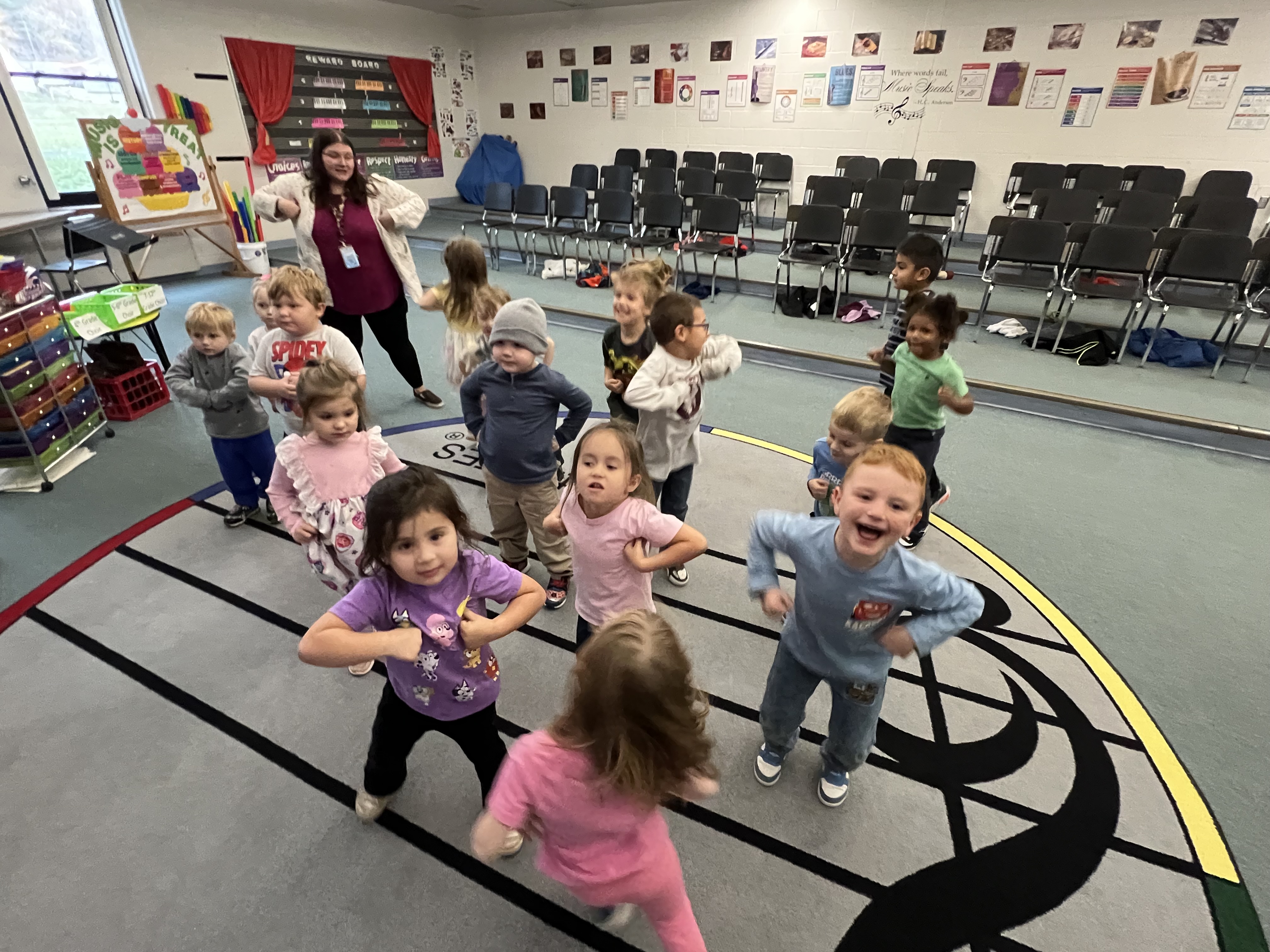 Later, I got to see these kiddos again while subbing for Mrs. Wilson, who was escorting our older students to All-County Choir. Just when I thought the best part of my day was over, I enjoyed singing, dancing, and storytime with these cuties.