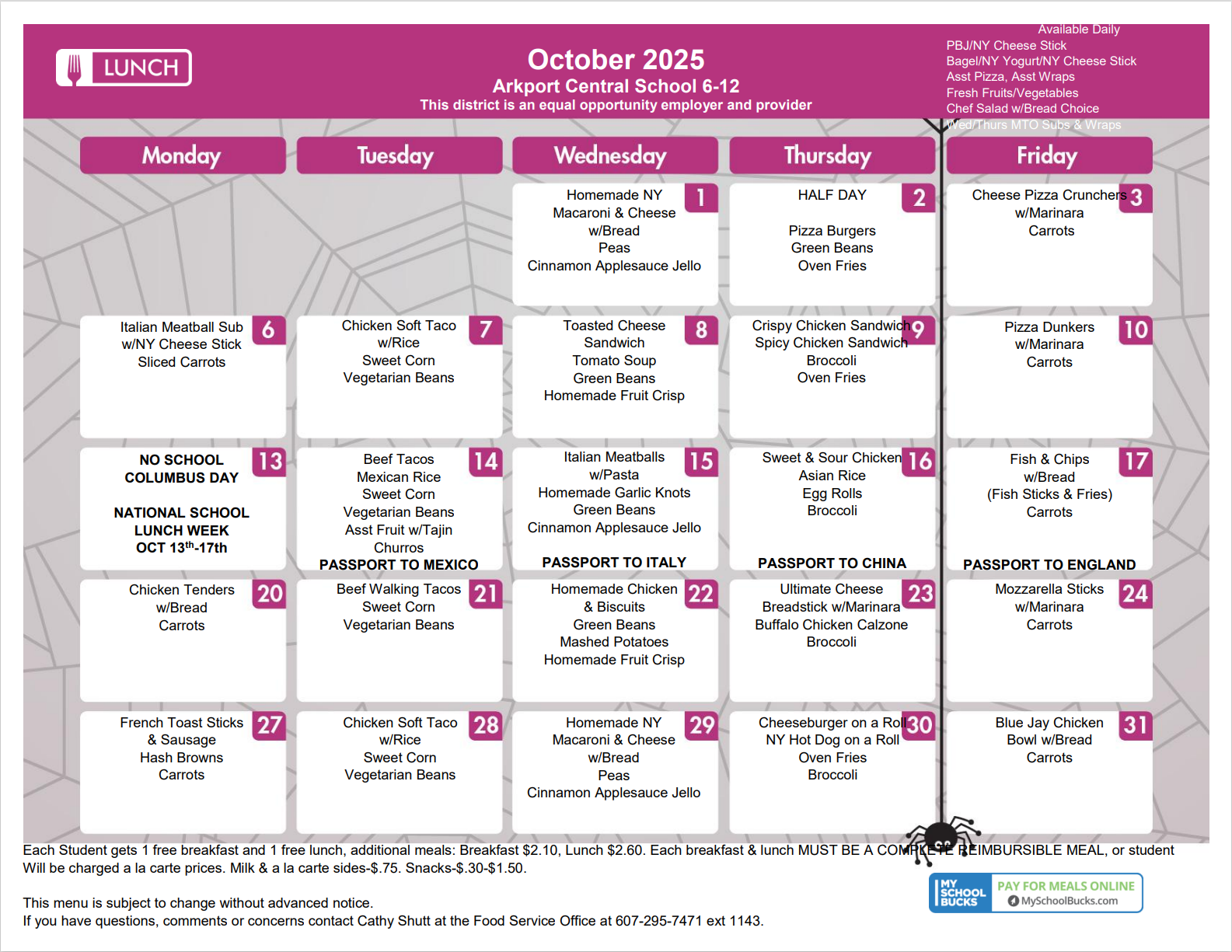 Check out whatās cooking in the cafeteria this October!