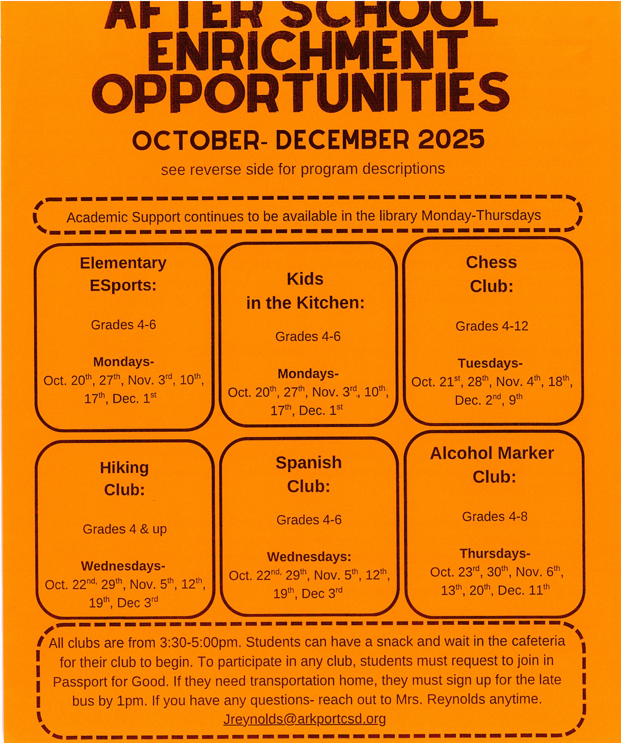 For questions or more information, please contact Mrs. Reynolds- jreynolds@arkportcsd.org