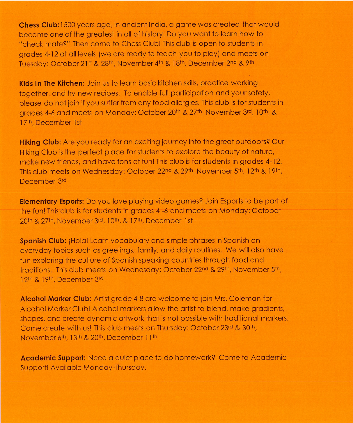 After-School Enrichment Clubs: OctoberāDecember š